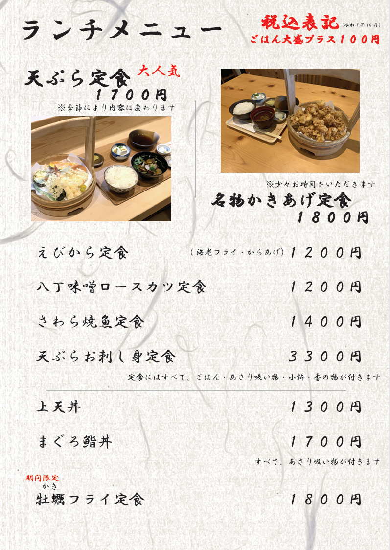 お知らせ 2026.02.15 3月臨時休業のご案内 2025.12.24 年末年始の営業日 2025.09.22 10月の営業について 2025.09.17 日曜日の営業について 2025.09.17 価格変更についてのご案内 定休日 ・月曜日(毎週) ・日曜日は不定休と致します 尚、予約のコース料理は承ります (2名様より、特上天ぷらコース含みます) 年末年始・お盆期間の長期休暇は、 ホームページお知らせ・インスタグラムをご確認ください